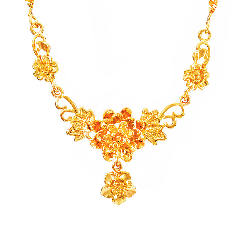 خواتین کے لیے تیار کردہ یہ 24K گولڈ پلیٹڈ فلاور نیکلس سیٹ اپنی خوبصورتی اور نفاست میں بے مثال ہے۔