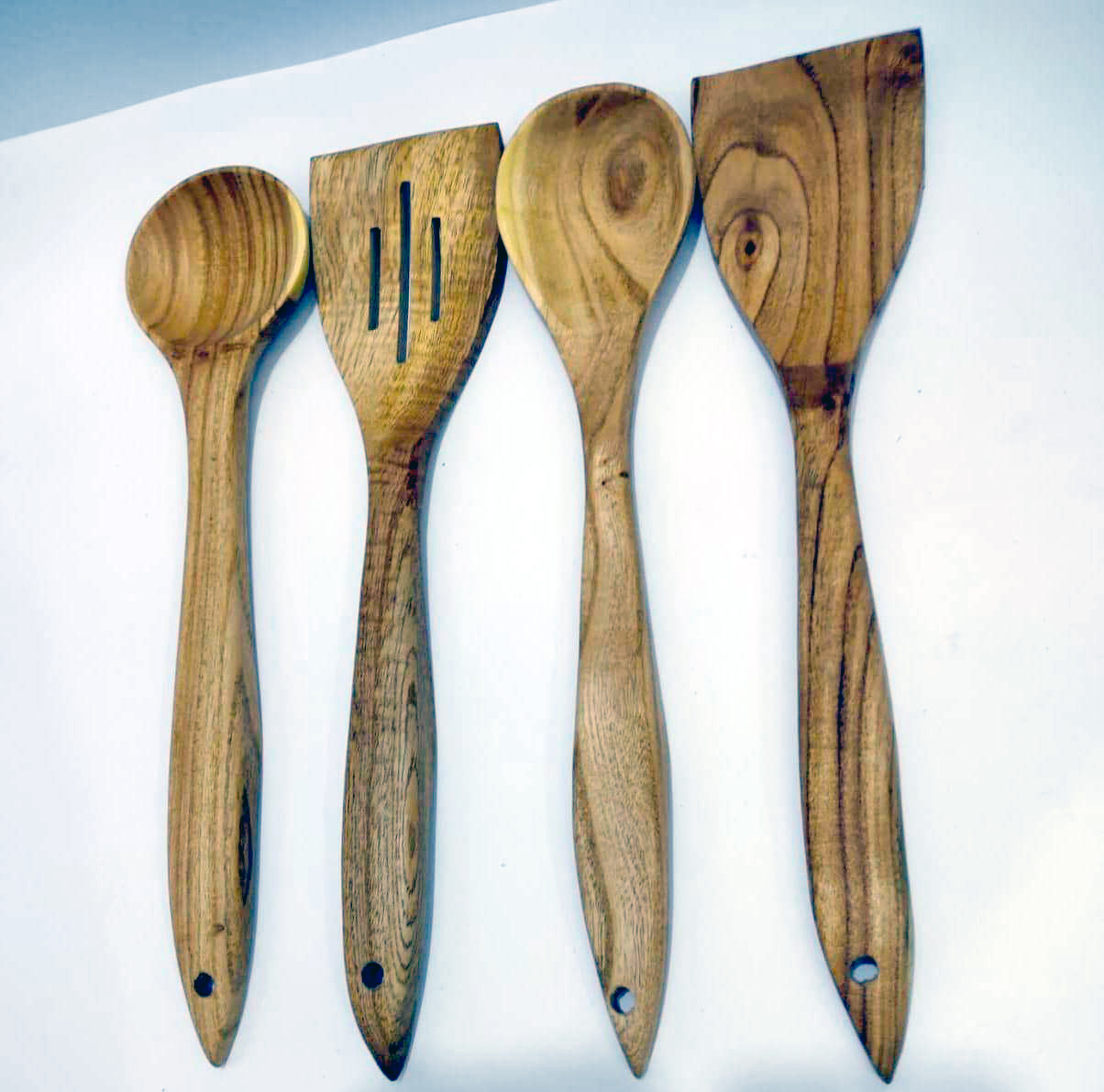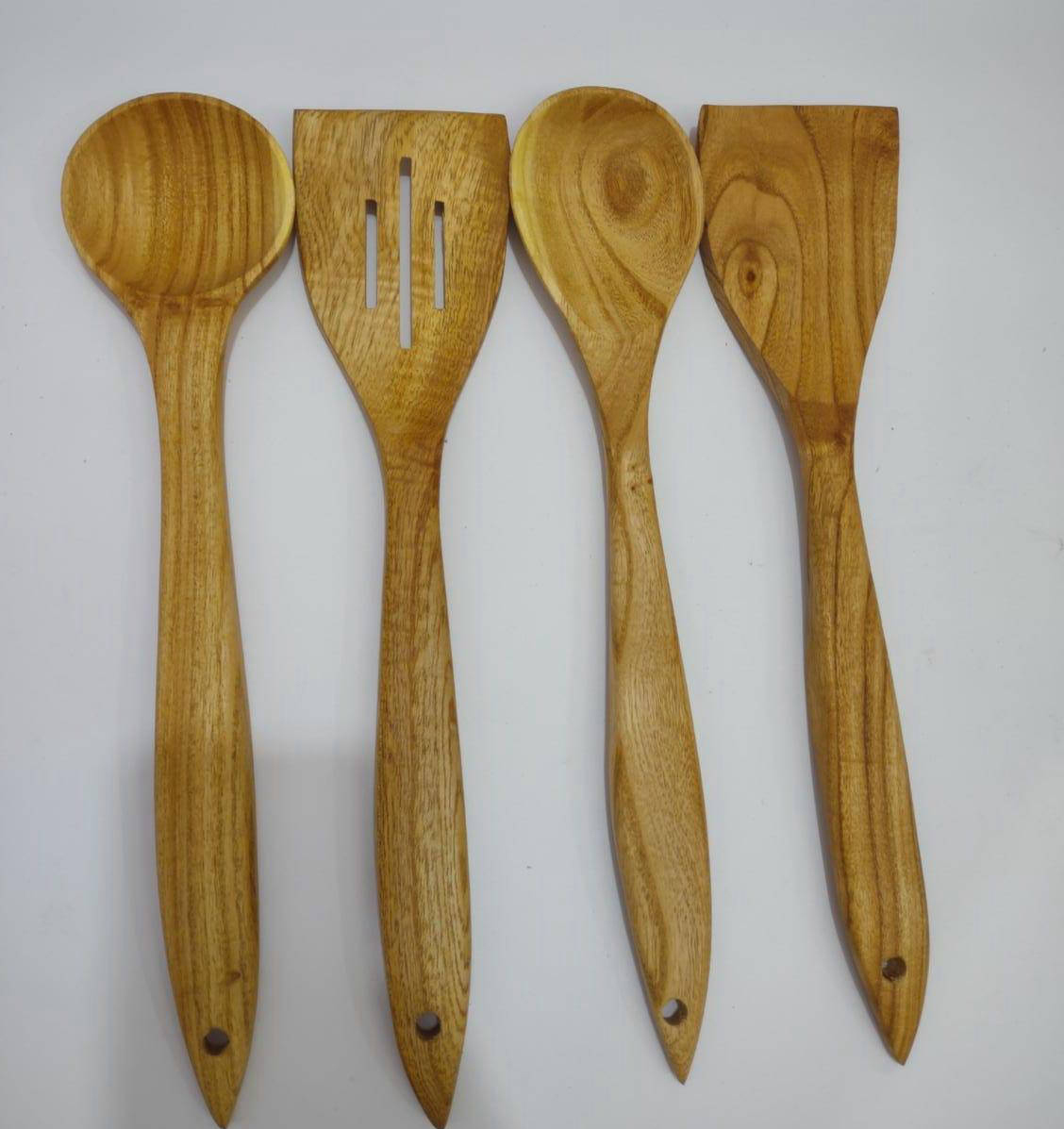 نام: 4 عددہ لکڑی کا اسپاتولا اور چمچ سیٹ