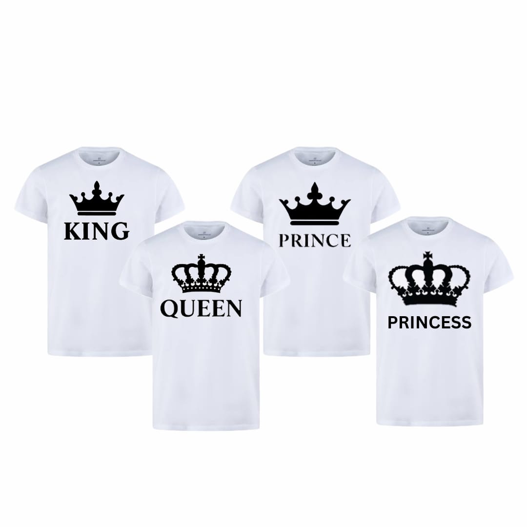 🌟 کنگ، کوئین، پرنس اور پرنسز اسٹائل وائٹ ٹی شرٹ کا کومبو – فیملی اسٹائل میں پیار کا اظہار!